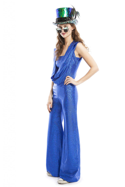 Blue Holographic Hooded Jumpsuit with Bandeau Top