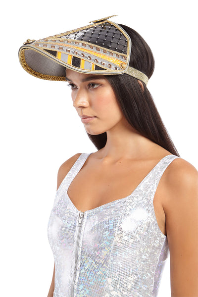 Rainbow rhinestone embellished captain hat