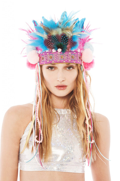 Hot Pink and Turquoise Feather Headpiece with Pompoms