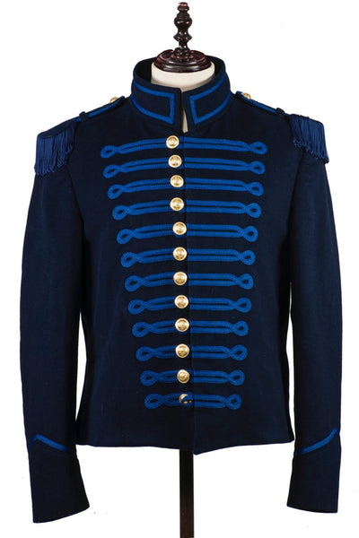 This emerald green jacket with Persian red collar and royal blue cuffs and shoulder pieces, gold trim and buttons is a modern and chic twist on military styles from the past and is a must-have for your next festival experience. The jackets are bespoke designs made in Pinky Laing's atelier in London and are timeless pieces that will make everyone around you want one.