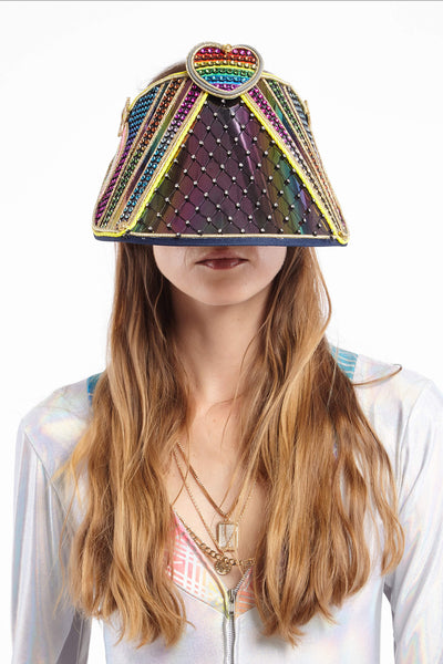 Monochrome is your ticket to success with this sparkler of a hat. The military style of the hat will make any look cool and the black and silver embellishment combined with silver stars and studs give it an extra edge. Wear it with a full black outfit and you're set.