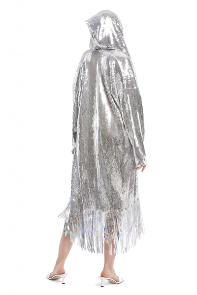 Little else is needed to complete your outfit with a standout full silver sequin embellished dress like this one. On top of that it says on the front you're a Supergirl. Words to live by. Buy now, superhero it later.