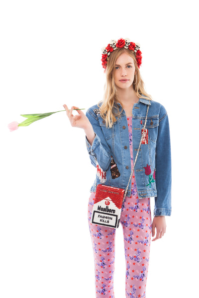 Blow life into your party outfit by wearing this fun and sparkly pink purse which sends the important message of weed being a friend indeed! Such a relevant message at the moment.. Easy for keeping all your essentials safe, this accessory will make everyone’s day.